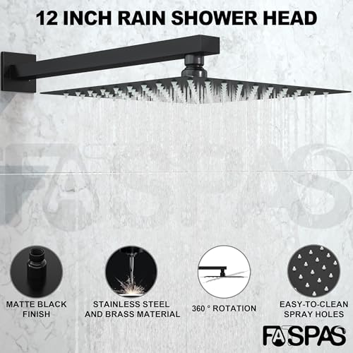 Adjustable Rain Shower Head and Multi Function Shower System: The 12" Ultra-Thin rainfall shower head and handheld shower head can be adjusted flexibly to achieve the perfect angle for your shower area. The matte black shower fixtures allow for easy switching between the rain shower head and the handheld shower head, delivering a wide range of soft rain spray