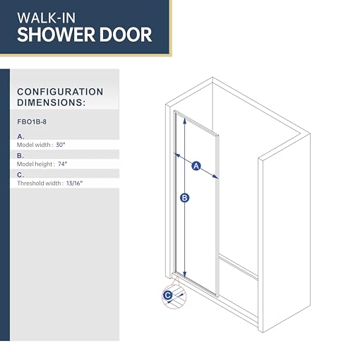 Dimension and Features: The framed walk-in shower screen finish is designed for a width of 30" and a height of 74", perfectly giving a modern and open style. Reversible for a right or left installation.