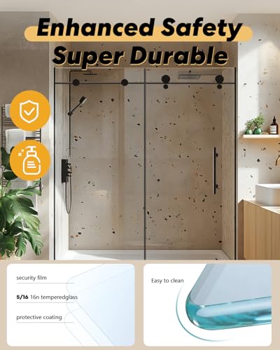 Adjustable and Space-Saving: The shower door features a flexible single bypass sliding mechanism that can adjust to widths between 56" and 60", allowing for seamless integration into various bathroom layouts while optimizing space usage.