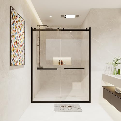 ?Designed For Convenience?: 56-60 " W x 76 " H. The adjustable width of this frameless shower door makes it suitable even for small spaces. With this sliding shower door, taking a bath or shower become available. PLEASE NOTE that if the width of the shower space is less than 58 inches, the upper guide rail will need to be cut before installation.