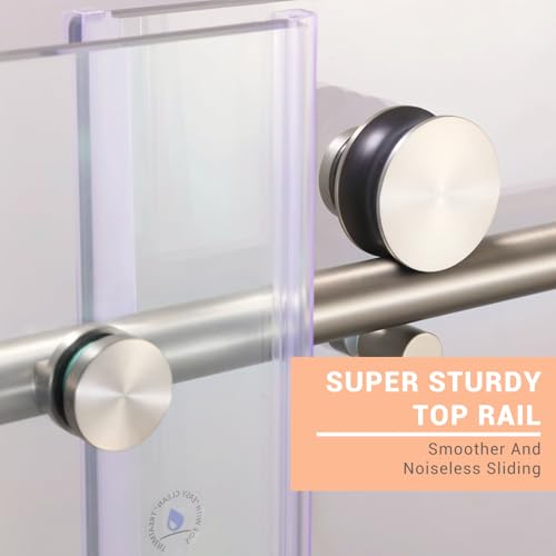 Sleek Frameless Design & Clear Glass – Elevate your bathroom with a modern, spa-like feel. The 8mm thick clear tempered glass and brushed nickel hardware create a seamless, open look that makes any space feel larger.