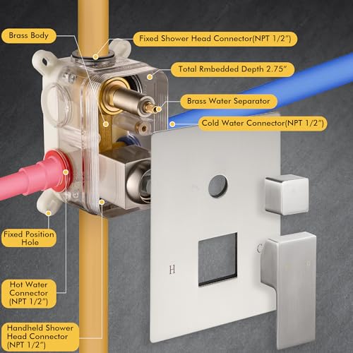 MULTI-FUNCTION - You can simply switch the diverter knob to choose a rainfall showerhead, or a high-pressure handheld shower to start your shower. Our connectors are standard 1/2 NPT threads, no adapter required, and compatible with copper tubes, PVC tubes, and PEX tubes.
