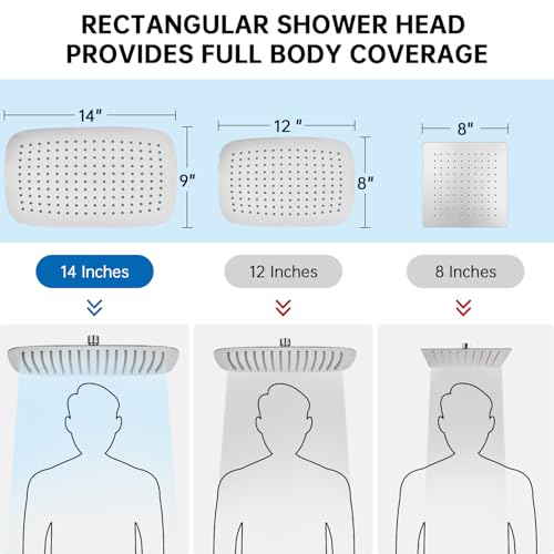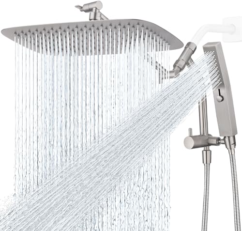 ALL METAL AND LARGE RAINFALL SHOWERHEAD: This dual shower head is made of high quality all-metal material to ensure durability. The 14-inch rectangular rainfall showerhead has a wide coverage area that can easily cover your entire body, allowing you to enjoy a gentle, refreshing rainfall sensation every time you shower, taking your showering experience to a whole new level!