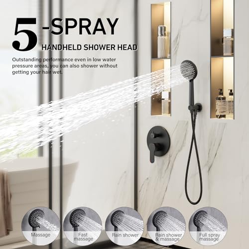 ?Premium Matte Black Finish?Our shower systems utilize high-grade water plating technology and undergo rigorous salt spray testing, so that the finish will not peel off even after prolonged use.