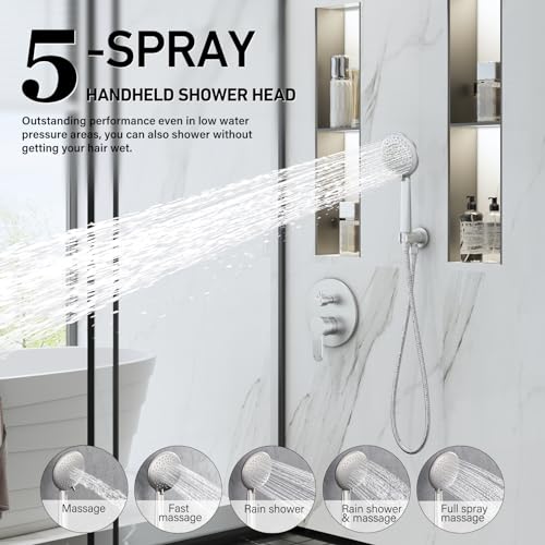 ?Premium Brushed Nickel Finish?Our shower systems utilize advanced brushed oil sealing technology and undergo rigorous salt spray testing, so that the finish will not peel off even after prolonged use.