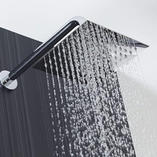 Large Coverage: 12-inch square stainless steel rainfall showerhead provides full-body waterfall coverage.