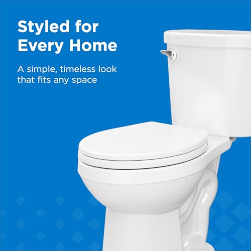 SOFT CLOSE TOILET SEAT INCLUDED: Round slow close toilet seat gently lowers to prevent noise and slamming, ensuring a safe and quiet close