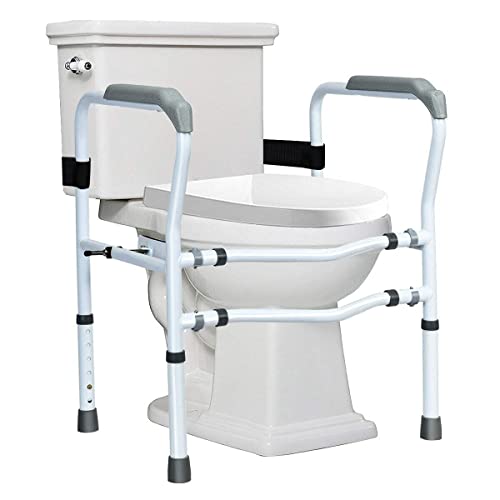 ?Adjustable Height & Width?In order to adapt to the different size of the toilet, we designed this armrest to be adjustable. By adjusting different gears, you can get toilet armrests of different heights (25’’-30’’) and widths (22.5’’/24.5’’). In addition to being placed next to the toilet, our handrails can also be used for squatting toilets.