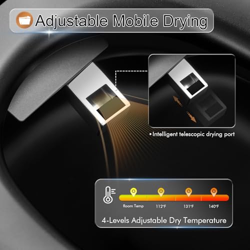 ?unique mobile drying feature?There are four temperature settings to accommodate different user preferences. Its flexible, moving nozzle design ensures an even drying experience, increasing comfort while reducing the need for toilet paper.