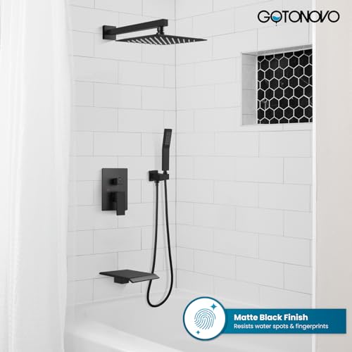 ?RELIABLE DESIGN?:Shower's swivel ball allows you to adjust the spray angle of the showerhead after installation, providing perfect shower experience for every family member.Widespread waterfall tub spout with larger water flow can quickly fill the tub at express speed.