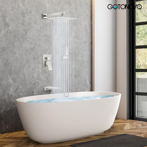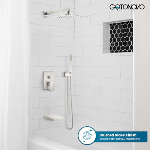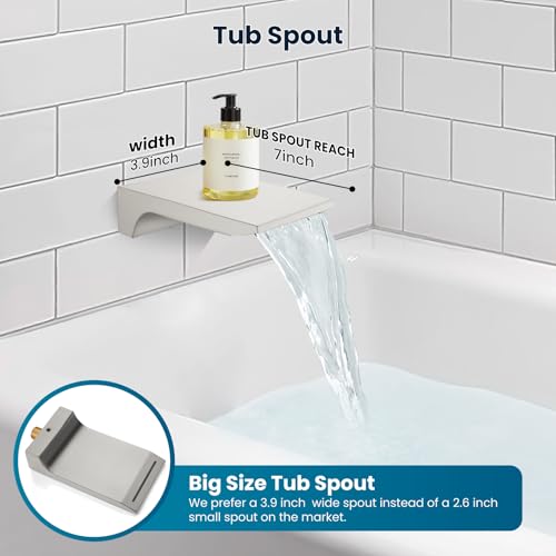 ?Function?: 3 Functions, powerful handheld shower, 12-inch square shower head and waterfull bathtub spout design.Single handle easy to control hot and cold water.