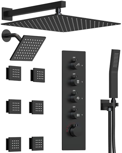 ?15 function combination? Discover the ultimate flexibility with our shower system that includes 4 distinct functions: a 16-inch ceiling mount rainfall, a 6-inch wall mount rainfall, a handheld, and 6 body jets. Whether you prefer to use each function individually or simultaneously, you can effortlessly combine them into 15 different spray patterns to tailor your ideal shower experience. Personalize your water flow and elevate your shower routine into an everyday luxury