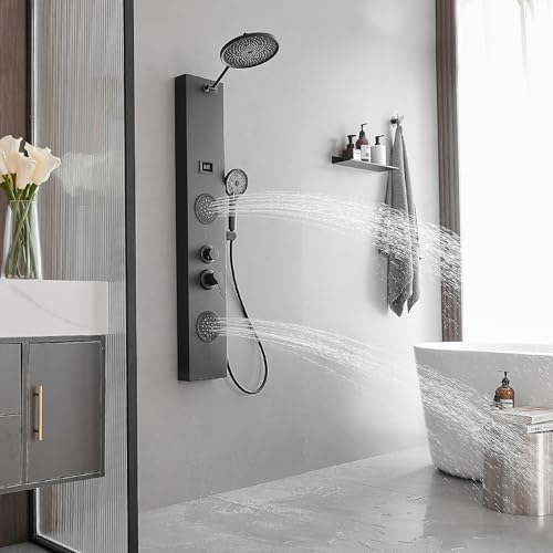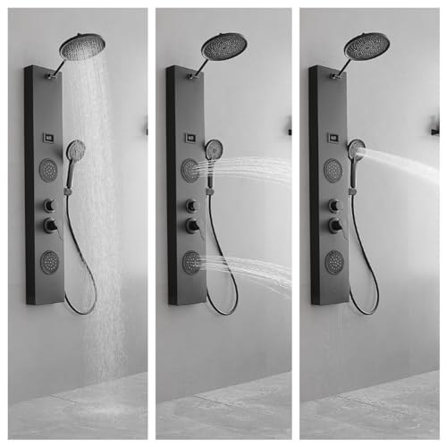 Sleek and Elegant Design: Elevate your shower experience with our stainless steel shower panel tower system in a sophisticated matte black finish. This all-in-one unit adds a touch of modern luxury to any bathroom decor.