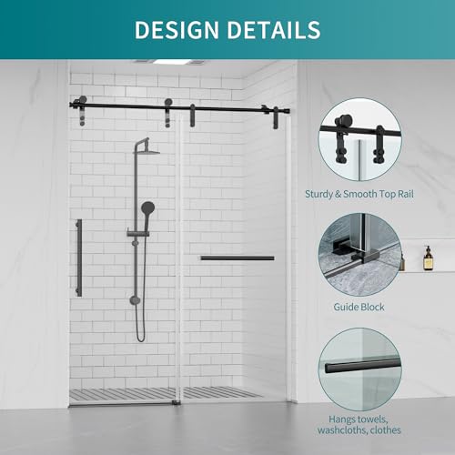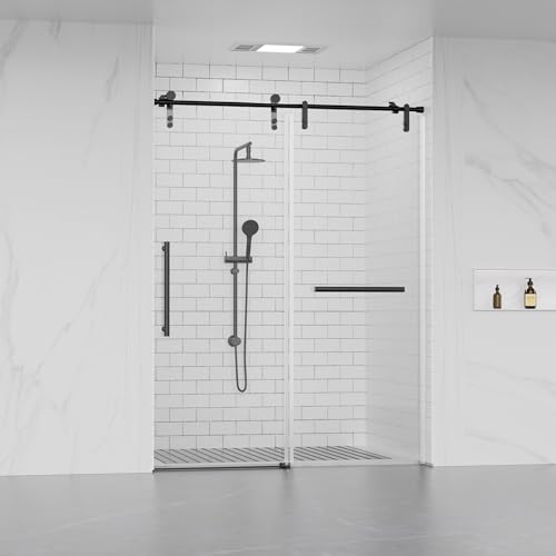 ?QUALITY MATERIALS?:Made of high quality material, the connectors are thick and durable, better fix the shower door on the wall, no need to worry about falling off.Our shower doors measure 60 x 76 inches and fit a variety of shower enclosures.The top stainless steel guide bar can be trimmed up 4 inches to fit different sized spaces.
