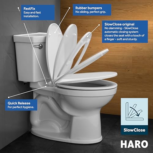 ???????????????????????? ???????????? ???????????????????????????????? ???????????????????????????????? - WC seats in a modern look | One size fits all - HARO Collection ONE fits on round one- and two-piece toilets | Toilet seat installation kit with a perfect fit due to adjustable hinge, fits toilets with standard mounting hole spacing 5 ½ inches | Toilet seat quiet close