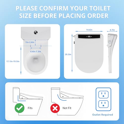 Universal Fit, Effortless Install: Our electric bidet toilet seat features a standard 1/2 inch tee fitting and two 1/2" - 3/8" adapters,Please note that the tee fitting should be installed on the water supply valve, and please confirm that the size of your water supply valve interface is 1/2" or 3/8".