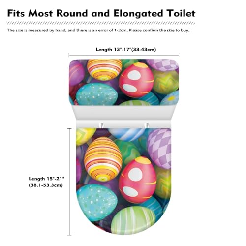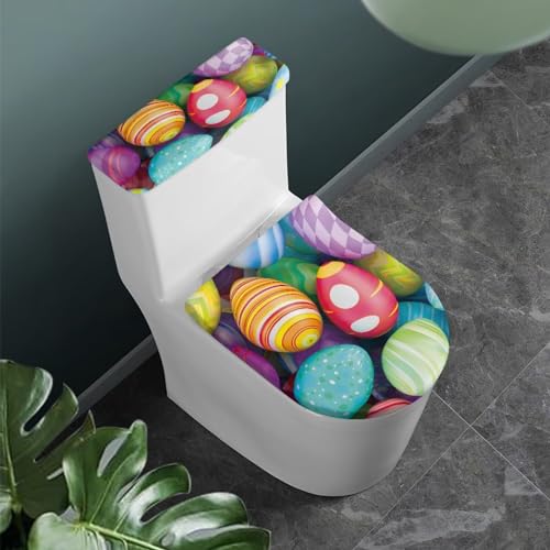 Hechitok Colored Easter Eggs 2PCS Toilet Seat Covers with Toilet Tank Lid Covers, Toilet Tank Covers Replacement Elongated Toilet Seat Covers Set for Easter Decor
