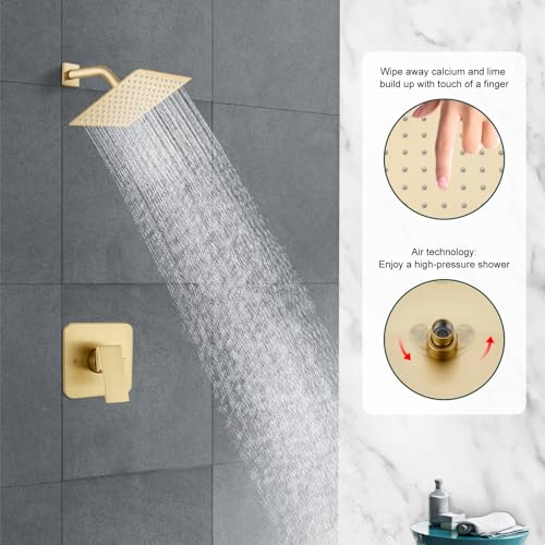 Reliable Design: 8 inch square shower head offering a good coverage to soak your entire body as if you are in a luxury hotel or spa.The sleek design makes the perfect bathroom shower faucet set that intertwines both modern and vintage.Shower faucets sets complete with rough-in valve, shower head, shower arm, handle and escutcheon