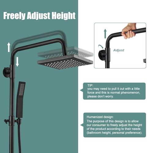 ?Shower Height?: Exposed shower faucet height can be adjusted between 39.4 inch-55 inch (100 cm- 140cm) , according to your comfortable level.