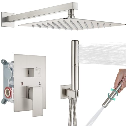 ?INCLUDED?: This shower combo set includes 12” square fixed shower head ,Dual Functional (2 In 1) hand-held shower head with sprayer, 16” shower arm wand, 59” shower hose, shower holder ,shower faucet and rough-in valve.