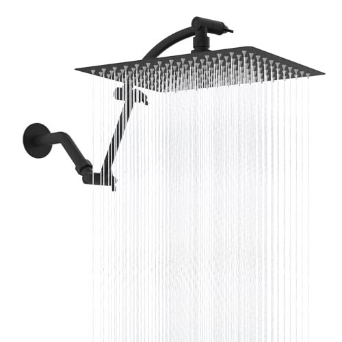 ?Upgraded Rainfall Shower Head?The upgraded 12x10'' shower head delivers higher water pressure and is lighter in weight, thereby providing better support for the shower arm extension; while maintaining the same refreshing showering experience. The brass swivel ball connector adjusts the shower head to any angle you desire, allowing you to enjoy a relaxing hotel-style bathing experience.