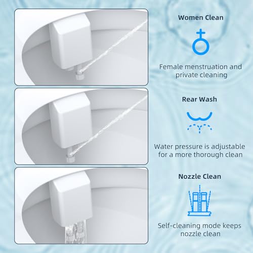 Dual Self-Cleaning Nozzle: For improved cleaning and sanitization, the bidet is equipped with dual nozzles to help rear and front cleaning which is quite beneficial for feminine hygiene. The nozzle automatically retracts behind the guard gate after each wash to ensure it is protected until your next use.