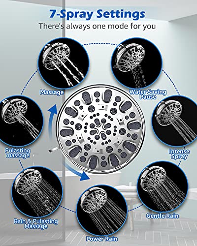 ?7-Spray Setting?FM-001 is an upgraded high pressure fixed showerhead with 7-spray settings (Massage, Pulsating Massage, Rain & Pulsating Massage, Power Rain, Gentle Rain, Intense Spray, Water Saving Pause). Gently rotating the handle on the shower head panel can switch the modes. One shower head can meet the shower needs of different crowds.