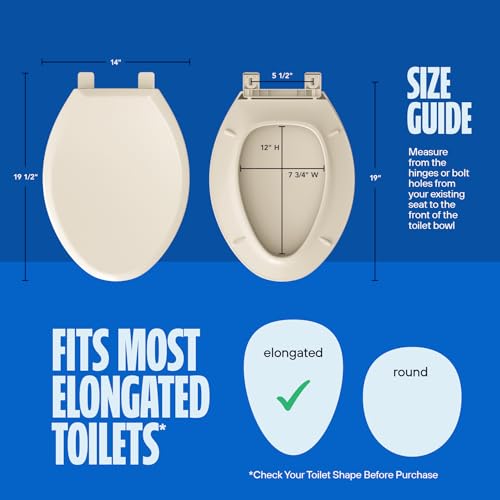 Adjustable Fit - Designed to fit standard elongated toilet bowls, this plastic toilet seat measures 19-1/2" x 14" and features an adjustable hinge for precise alignment. Enjoy a snug, tailored fit for added comfort and easy installation.