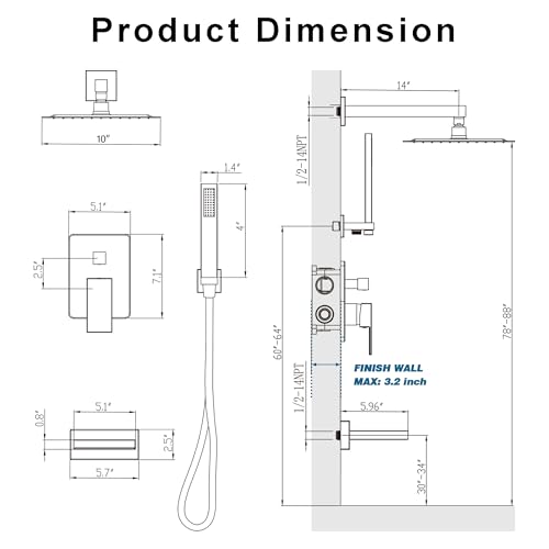 HIGH-FLOW-RATE TUB SPOUT: High-flow-rate design ensuring a swift and efficient fill for your bathtub. Experience the convenience of a 5.1” wide large tub spout that complements the overall performance of our tub shower faucet set