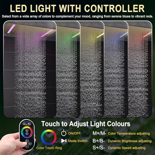 ?Full Body Coverage?Our shower head featuring three functions (Rainfall/Waterfall/Mist) ensures comprehensive water distribution across your entire body. All three functions can be activated simultaneously, with water cascading vertically, delivering a thoroughly rejuvenating experience from head to toe.