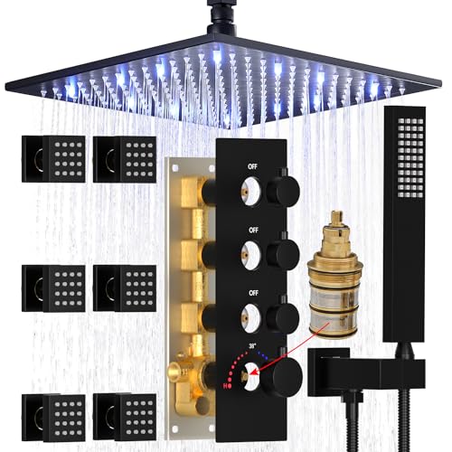?ROMANTIC LED RAIN SHOWER?LED generates electricity with the massive flow of water from the 16" oversized shower head, no need to connect to a power source. LED's unique design, the color will change with the temperature, *Blue 0-30C (32-86°F), *Green 30-40C (86-104°F), *Red 40-50C (104 -122°F), *Flashing Red 50C-100C. You will have a fantastic shower experience.