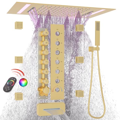 ?3 In 1 Functions Showerhead with LED?14.17*19.68inch?360 * 500mm? oversized shower head, large enough shower space to enjoy the shower to the fullest. The 3 settings have a rain shower, spray, and waterfall functions, which can make you look for more showering fun in the shower environment and break the traditional single rainfall.