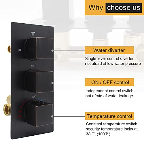 [ 3 FUNCTIONS SHOWER FAUCET SET] - The single lever shower diverter, offering consistent powerful shower even under low water pressure, you can switch effortlessly from rain shower head to body jets or hand spray. You can’t use all the shower heads at the same time, but you can close any of the jets at any time.