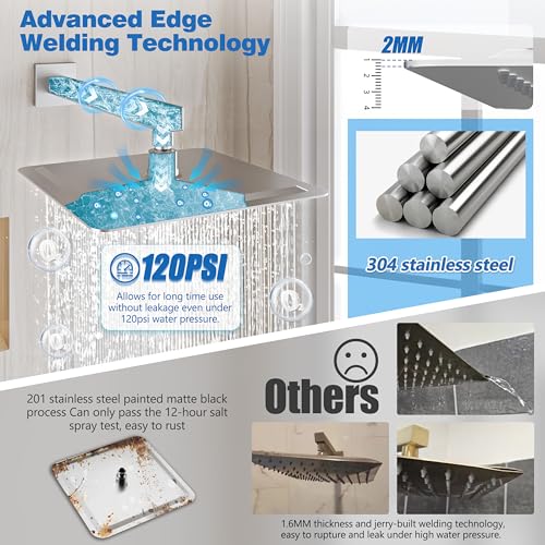 ?High-Pressure Shower Faucet Set?The generously sized 12-inch overhead showerhead provides full-body coverage, delivering a soothing rain-like experience. Made from 304 stainless steel, it’s designed to perform optimally even under low water pressure, providing a luxurious and immersive shower experience