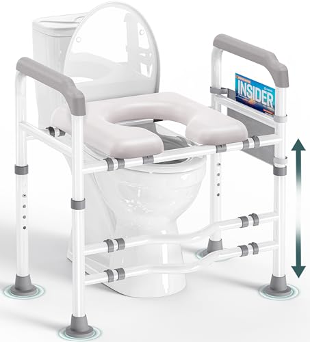 ?Non-Slip Armrest & Leg Pad?: Each adjustable leg of raised toilet seat for seniors has anti slip rubber pads, the non-slip and stable handrails let elderly users can easily sit down or stand up from the toilet safety frame, HOMLAND toilet seat riser with handles more safely and stability