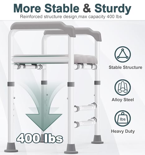 ?Sturdy and Stability?: HOMLAND elevated toilet seat features a heavy-duty design, toilet seat riser built with a high-strength alloy steel frame featuring six crossbars provides exceptional stability, weighing 13 lbs, supports up to 400 lbs
