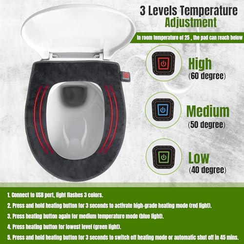 USB Powered: Our toilet seat heater comes with an upgraded USB powered design which also works with power bank (not included). The pack includes a type C USB Cable, with 5V/2A power. Order it for yourself or as an original gift idea for a friend or loved one!