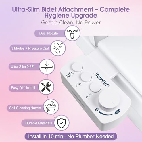 THREE CLEANING MODES PLUS PRESSURE DIAL: Gentle rear wash, soothing feminine wash and self?cleaning nozzle; smooth dial adjusts water pressure from gentle to strong; meets varied personal preferences; hygienic, money-saving alternative to toilet paper
