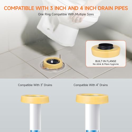 Wide Compatibility: Compatible with 3-inch and 4-inch drains/pipes, with wide applicability for flanges above or level with the floor. Whether replacing an old toilet or renovating the bathroom, there is no need to worry about size issues.