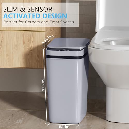 ?Waterproof and durable?Crafted from high-quality ABS materials and equipped with IPX5 waterproof technology, this 2.6-gallon automatic trash can is resistant to water and humidity, guaranteeing trash can for bathroom long-lasting and clean use.