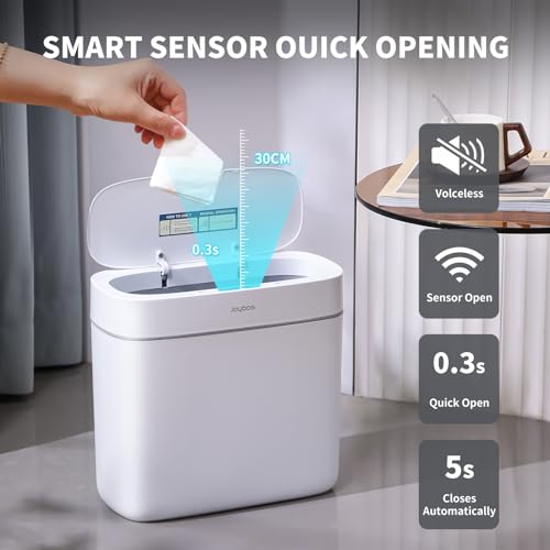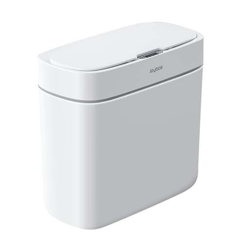 JOYBOS Bathroom Trash Can,3 Gallon Waterproof Automatic Small Bathroom Garbage Can with Lid, Slim Motion Sensor Plastic Narrow Trash Bin for Bedroom, Kitchen, Office,RV White
