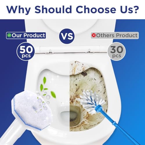 ? Value Pack of 50 Refills : This set includes 50 high-quality toilet wand replacement heads, offering a cost-effective solution for your cleaning needs. Perfect as toilet brush refill options for long-term bathroom maintenance.