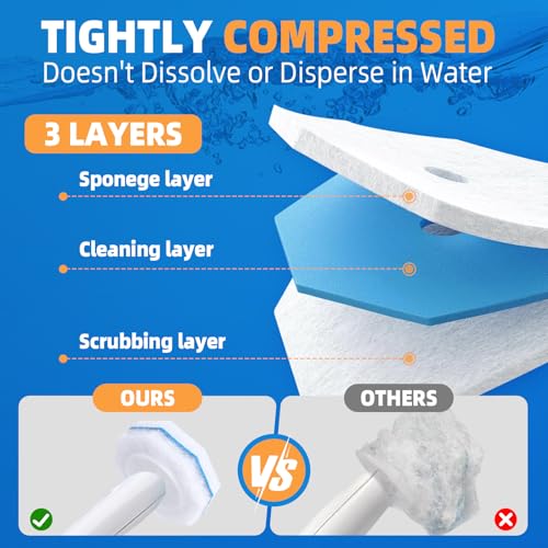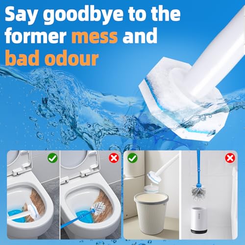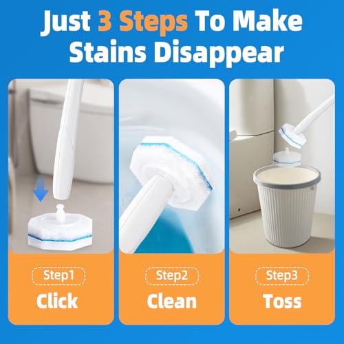 ?Won’t fall apart in water toilet cleaner refill pads?Each toilet wand kit is constructed with three-layer technology and expertly compressed, perfect for those of you who are tired of your toilet scrubber refills breaking during cleaning, and your toilet bowl cleaner refills stay intact whether you scrub hard or soak in water. The connector of the toilet wand refill has been rigorously tested and can be firmly connected to the toilet brush without slipping, shaking, or falling off. Make bathroom cleaning one less thing to worry about.