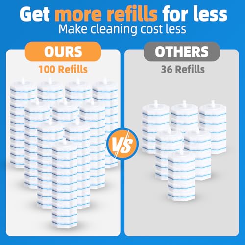 ?100 pieces toilet wand refills bring ultimate value?100 Count large packages toilet wand refills are designed for long-term use to minimize purchase frequency. Lower costs, more gains! save money! By focusing on core functionality and efficient packaging, these disposable toilet brushes are perfectly compatible with most toilet wands, making them your reliable partner for easy, hassle-free bathroom cleaning. Great value for money and just what you want in your bathroom.