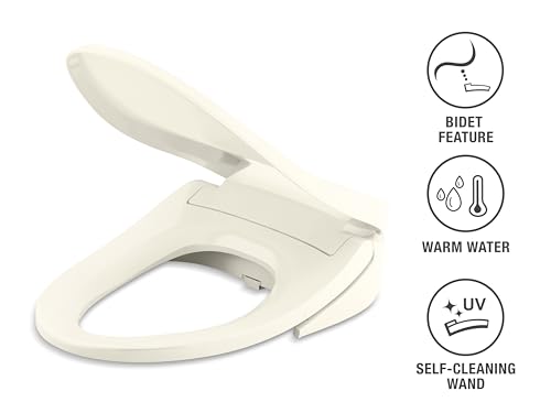 No Slam Elongated Bidet: Kohler Quiet Close Toilet Seat features a quiet-close lid that closes slowly and silently without slamming; hybrid heater provides continuously heated water for consistent comfort, and front and rear wash modes provide warm water for cleansing, Biscuit