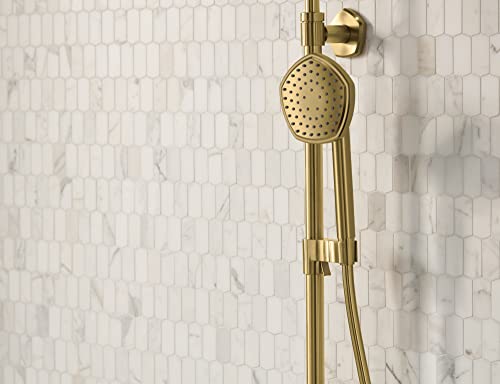 Diverter positioned at the base of the column makes for easy toggling between the handshower and rainhead
