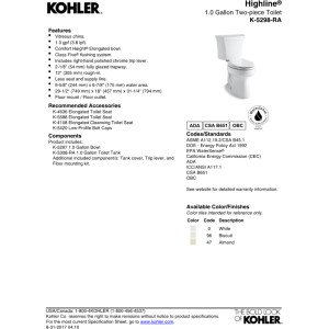 Comfort height feature offers chair-height seating that makes sitting down and standing up easier for most adults