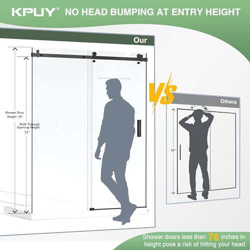 Frameless Shower Door?54" W x 76" H. Entrance height of shower door is 72 inches to avoid the risk of hitting your head. This glass shower door features an adjustable width, offering flexibility to fit various bathroom layouts. Width Adjustment: 50" to 54" (cut top and bottom tracks to fit your needs). Elevate your bathroom with our stylish black matte finish shower sliding door.