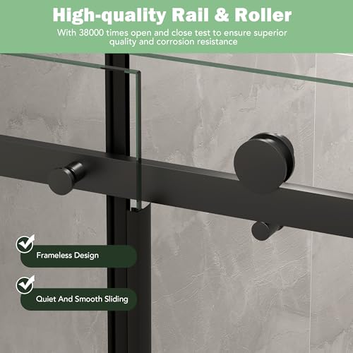 ?Sturdy and Enduring Structure?The sliding shower door is made of aluminum frame with black finish ensures excellent corrosion resistance, rust prevention, maintaining its modern and stylish appearance for a long time. The high-quality stainless steel rollers and track work seamlessly together, which ensures smooth preventing any impact or noise.
