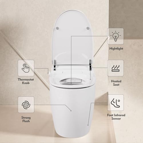Soft Night Light: The smart toilet including night light, Knob ambient light?providing convenient visibility during nighttime bathroom visits. Prevent midnight accidents and make your trips to toilet safer for your family.